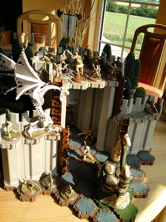 Abgang schließlich durch das Tor brechen und die Burg stürmen konnten, hielten sich meine Elfenrocker prächtig. Beide Armeen dezimierten