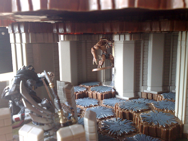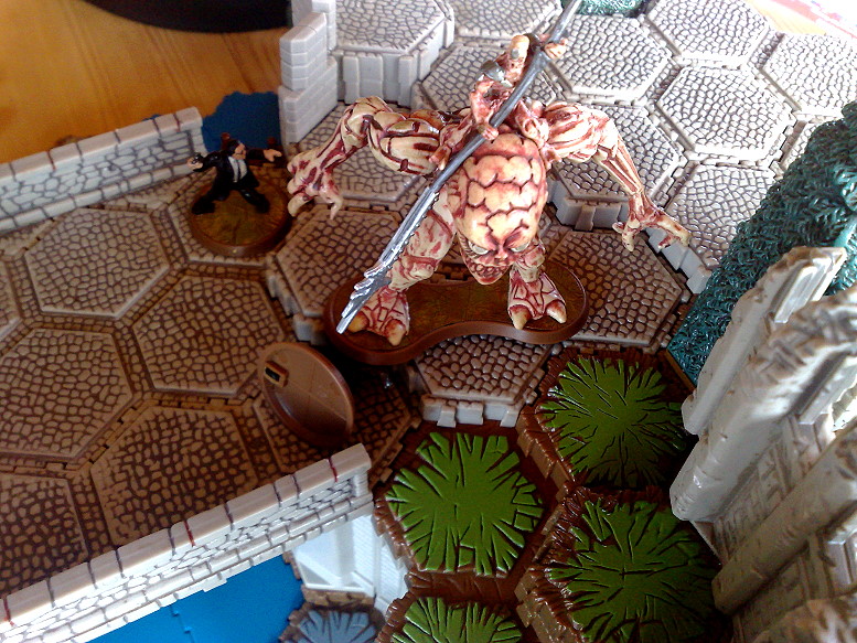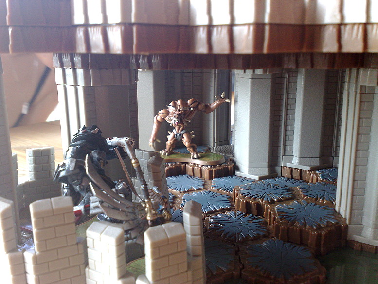 Nun hat Tor-Kul-Na die Faxen dicke und greift in die Schlacht ein. Der erste Gladiatron wird zermalmt.